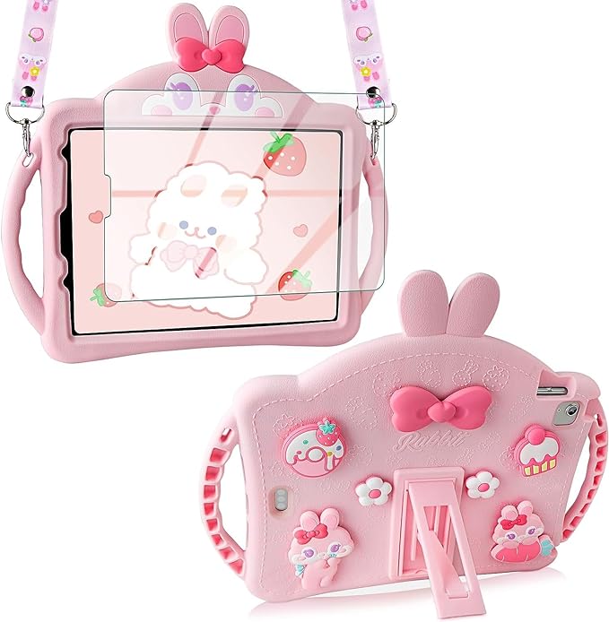 iPad 9世代 ケース アイパッド 第8世代/第7世代 ケース キッズ カバー 保護フィルム付き 折り畳みスタンド 肩紐 ハンドル付き 耐衝撃 落下防止 軽量 持ち運び 可愛い 子供 あいぱっど第9世代 ケース 10.2インチ ピンク