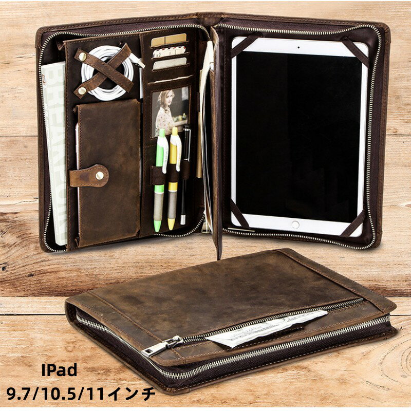 素材:本革 iPad 9.7/10.5/11インチ ●上質なレザー素材を使用しているので手触りよく、キズつきにくい。 ●デザインだけでなく機能も重視したケースです。 ●スタンド機能が付いているので、色々なシーンに対応できます。 ●個性的で、男女問わずお持ちいただけるデザインで、どんな場所でも際立ちます。 ※注意事項※ 商品の色は撮影時の環境、ディスプレイの発色などにより実物と多少の違いが生じることがございます。予めご了承下さいませ。