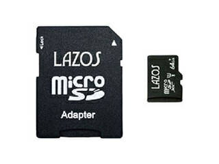 Lazos 高速転送 microSDXCメモリーカード 64GB UHS-I U3 CLASS10 SD変換アダプタ付 書き込み禁止スイッチ付き L-64MS10-U3