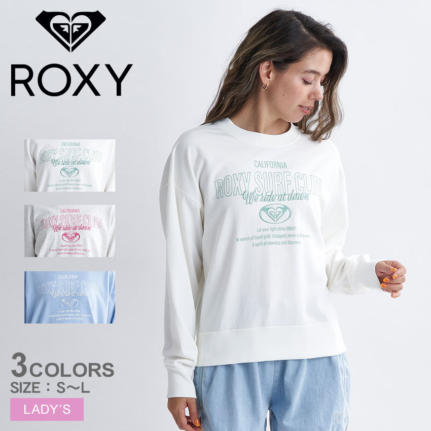 ロキシー SURF CLUB L/S 長袖Tシャツ レディース ホワイト 白 ブルー 青 ROXY RLT241068 トップス ウエア ロンT ロングスリーブ クルーネック 刺繍 カジュアル スポーテ..