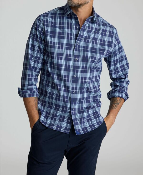 アンタックイット メンズ シャツ トップス Men's Slim Fit Wrinkle-Free Short-Sleeve Hillstowe Button Up Shirt Blue