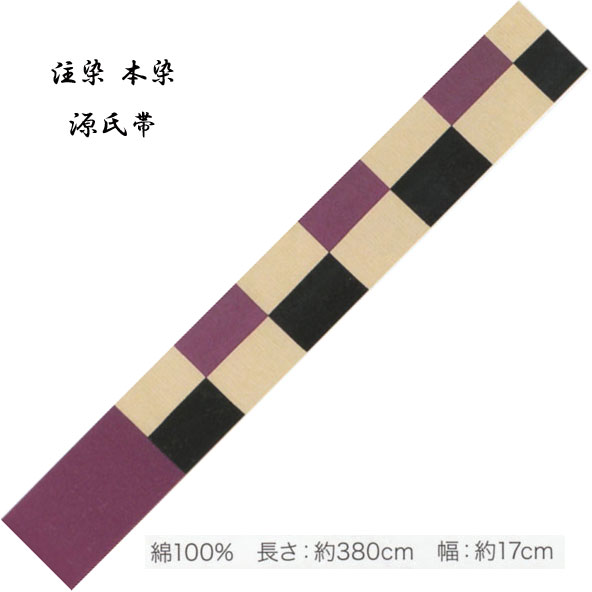 源氏半巾 ゆかた帯 綿100%、染タイプ・No,314 長さ 380cm 帯巾 17cm 東京本染 源氏物語ブランド小袋帯